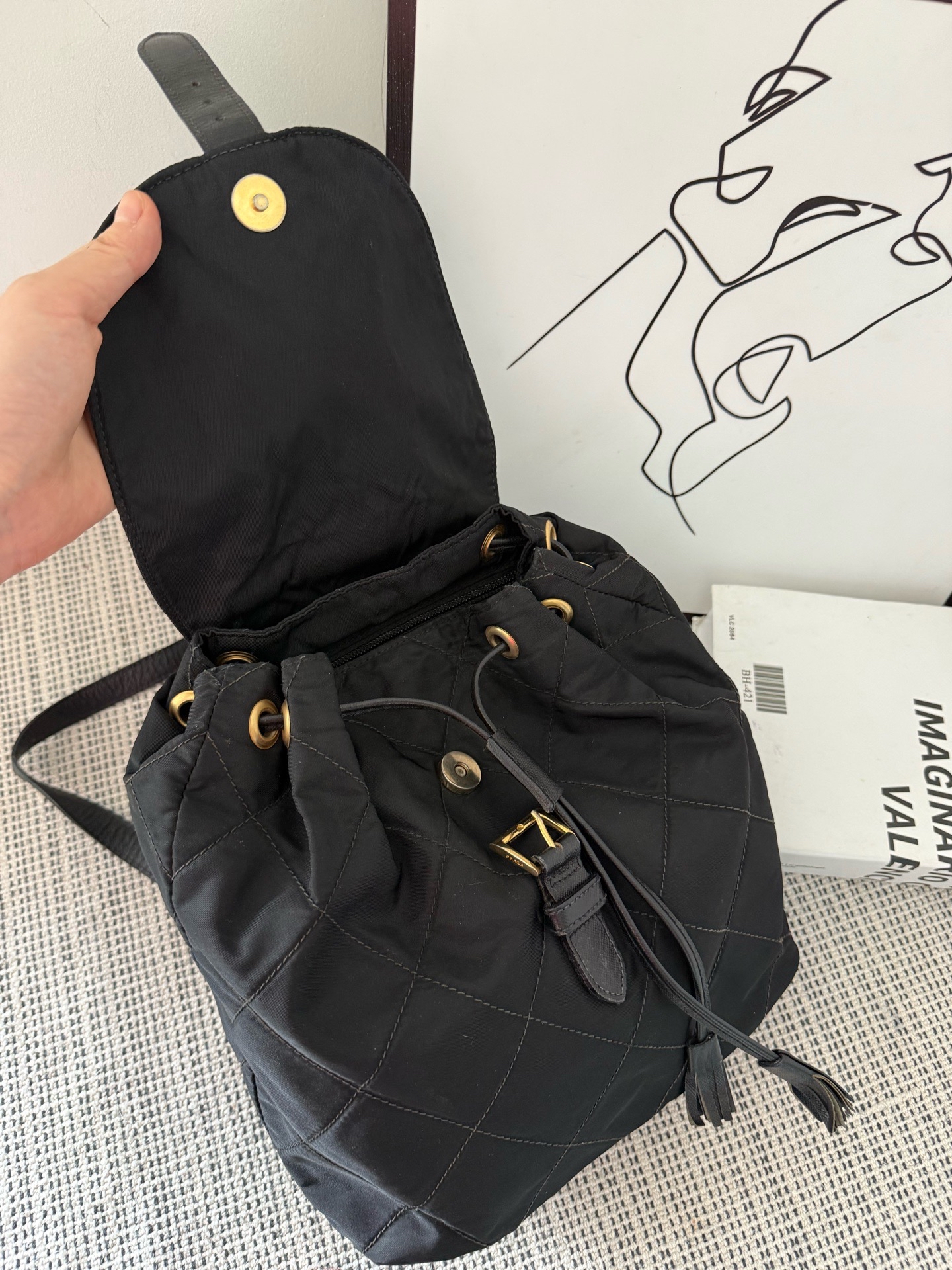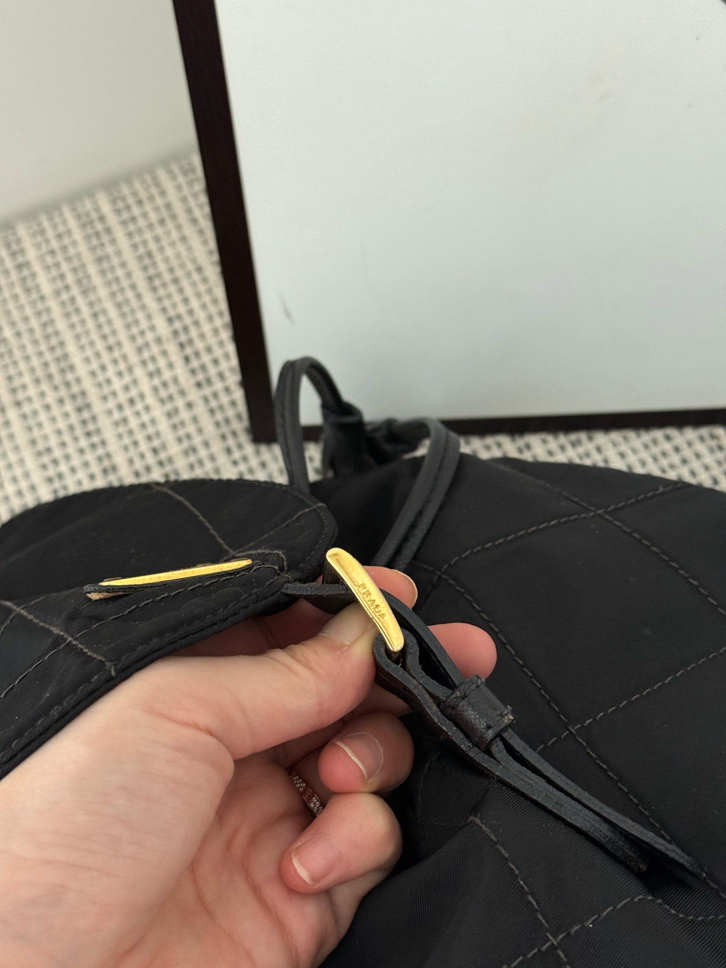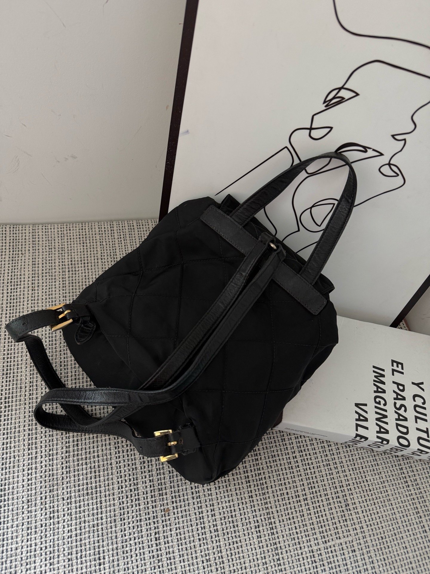 【預訂貨品】Prada菱格黑金書包