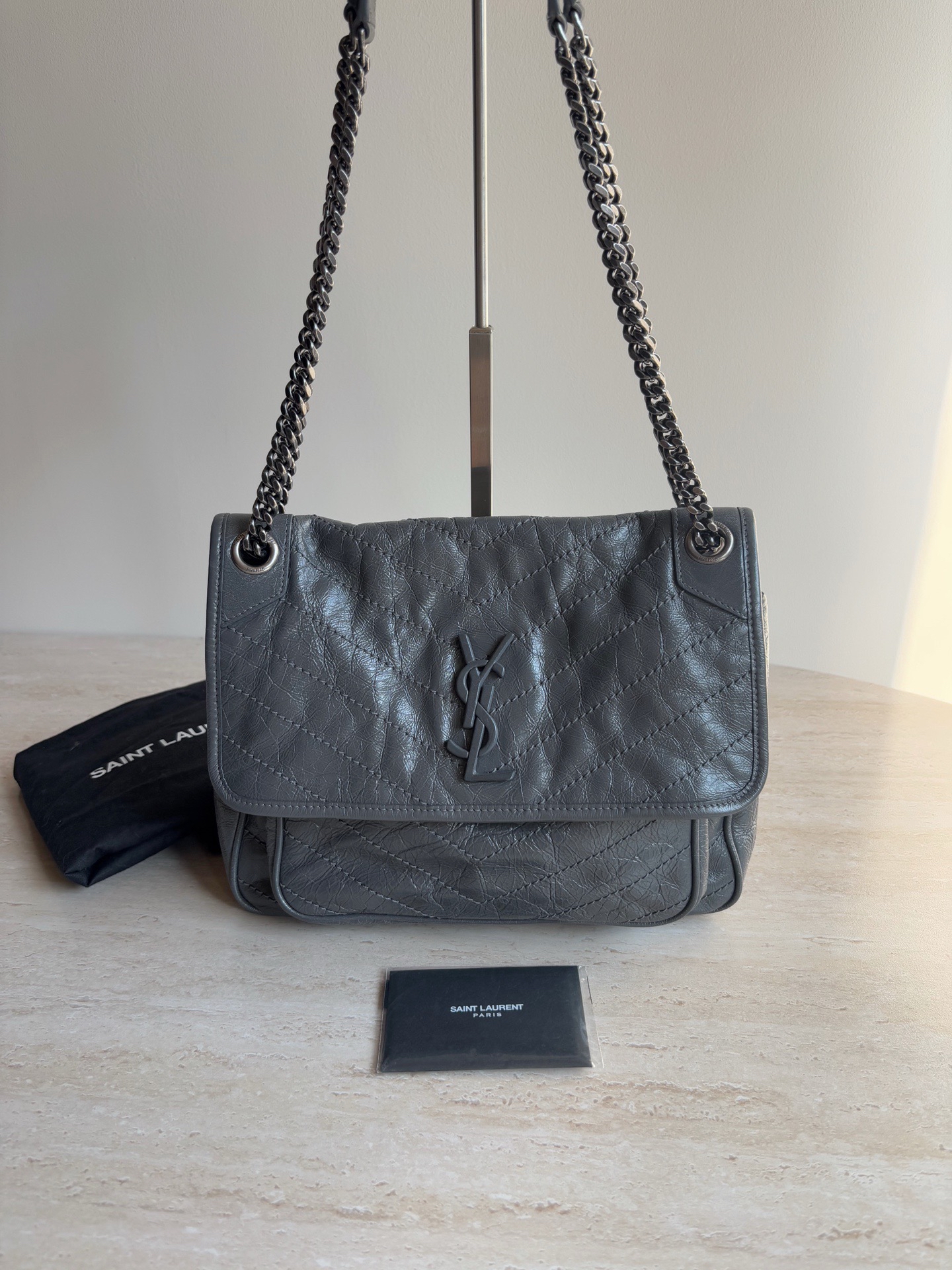 【預訂貨品】YSL灰色niki斜孭包